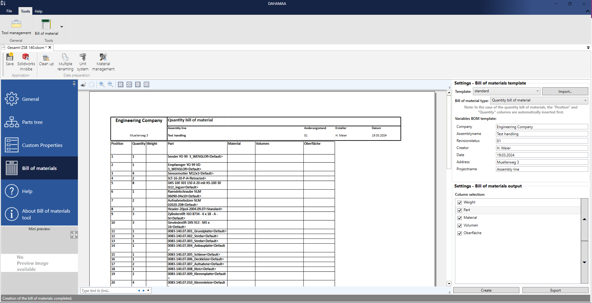 - Laden des Stücklistenbaumes der gewünschten Baugruppe/des gewünschten Projektes